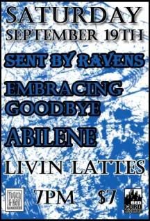 Okay guys so heres the deal, really good friends of mine in a band called Sent By Ravens will be playing a show outside this Saturday at the Keeder farm in Pilot Mountain, North Carolina. Embracing Goodbye and Abiline will be playing as well. Johnathon has told me that there will be Food and Drinks as well as huge bonfire to finish out the evening. The flyers on my page and for more info go to his link,